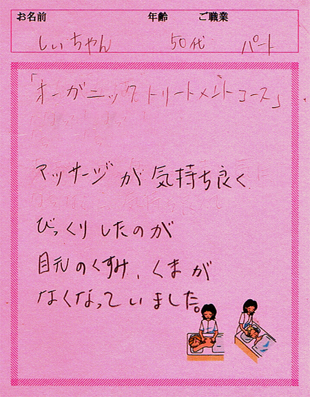 目元のくすみ、くまがなくなっていました/しいちゃん 50代女性(パート)浜松市中央区 ☆旧 南区